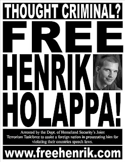 On July 11th 2008 a 23 year old Finish National by the name of Henrik Holappa legally entered the United States in hopes of obtaining asylum from the politically motivated charges being brought against him in his native country. The Finnish Government, and their security police; SUPO, have deemed Henrik Holappa a criminal for violating their countries speech laws because of an essay that he published and distributed over the internet criticizing the media and the governments conduct regarding the recent gang rapes of numerous Finnish woman.